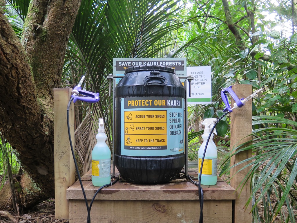 Kauri die-back is a serious issue for the Waitakere Ranges – as well as other areas of native forest in the north of New Zealand. Kauri Dieback is caused by a fungus like disease that is killing kauri trees, it was only discovered in 2008. It is a spore that that gets into the roots of the tree, spreading up and eventually killing the tree, trees of all ages are affected and it is thought to be spread by animals, birds and humans. There are numerous spray stations around the park.