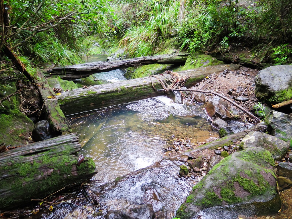 Like a lot of the waterways in the park in the early 19th century the Piha stream was dammed and then used to float kauri logs down to logging mills on the coast. The remains of some of the dams can still be found in various locations.