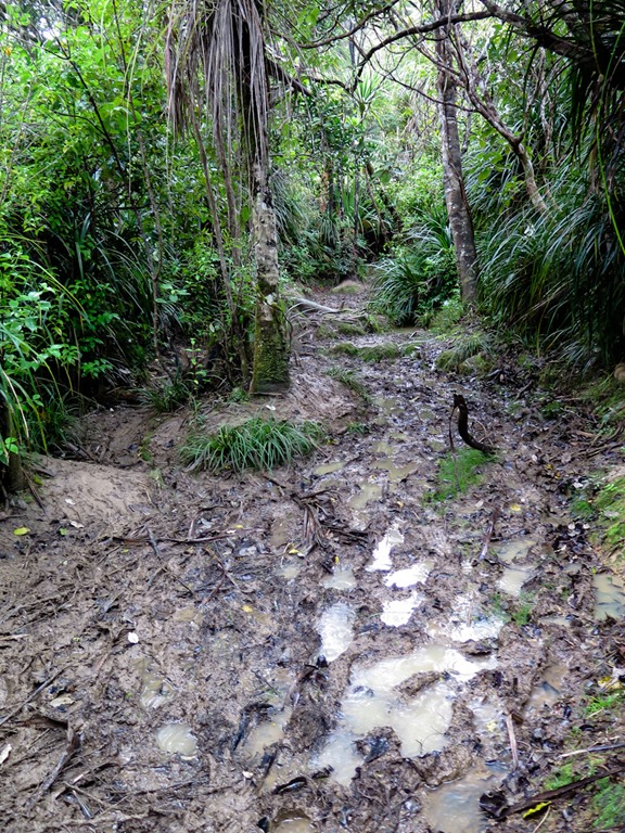Vicki had been telling me about the work the council had been doing on ‘maintaining’ some of the tracks, especially those on the Hillary Trail, the 85km long section of trails made famous by Sir Ed Hillary. This basically means widening the trail, removing anything remotely challenging and then covering the track in gravel, – thus removing half the fun of bush walking, but making the trails easier for those who don’t want to get dirty I guess. On the Forbes Trail it was pleasing to see they had not been every where !