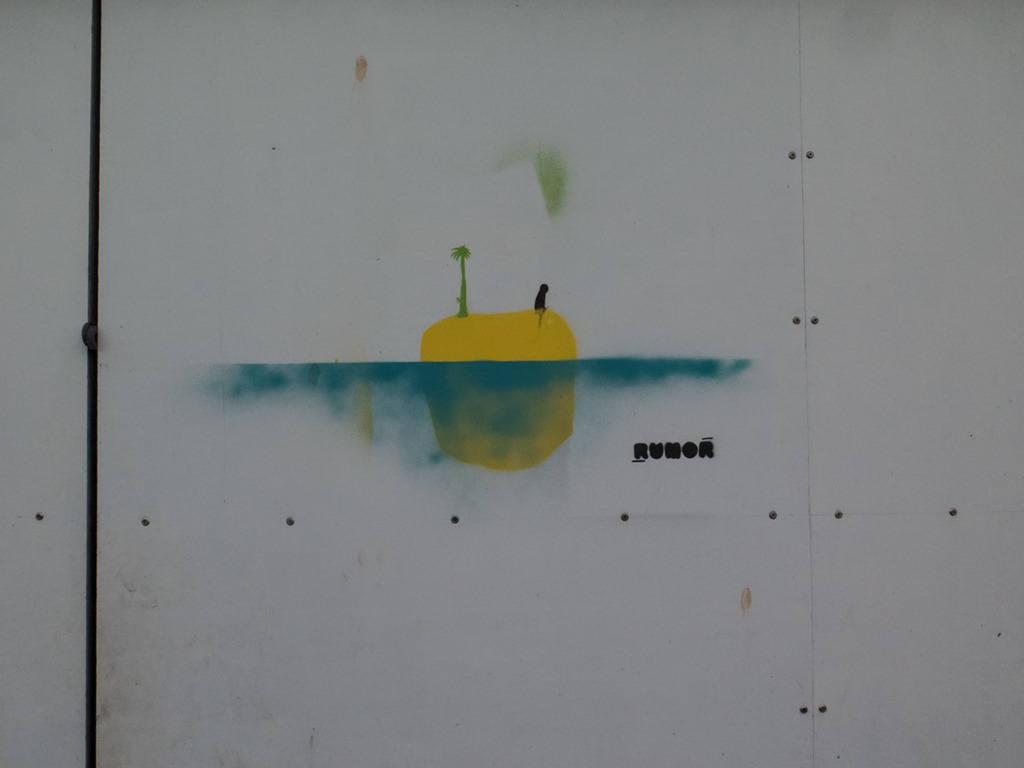 I walked along the outside edge of the wall for a bit, until I found a bit of fencing that was loose so I stuck my head inside and took a photo of the moss covered wall – slightly blown out by the weird problem affecting my camera.