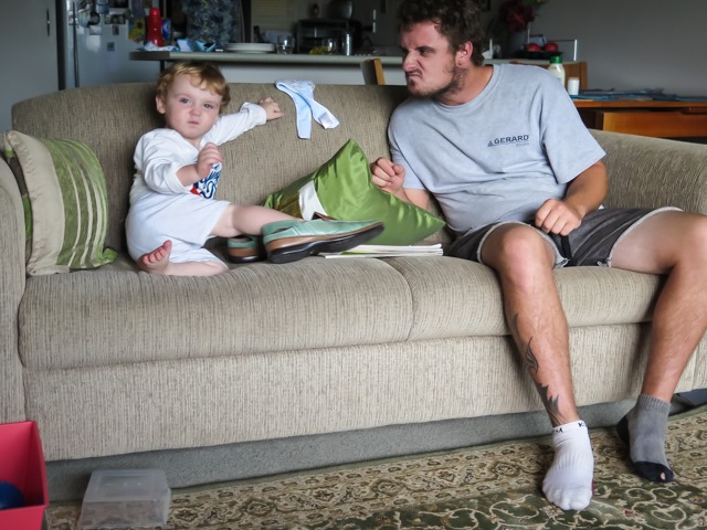 Aiden is teaching him to pull faces, a skill that he will obviously need later in life.