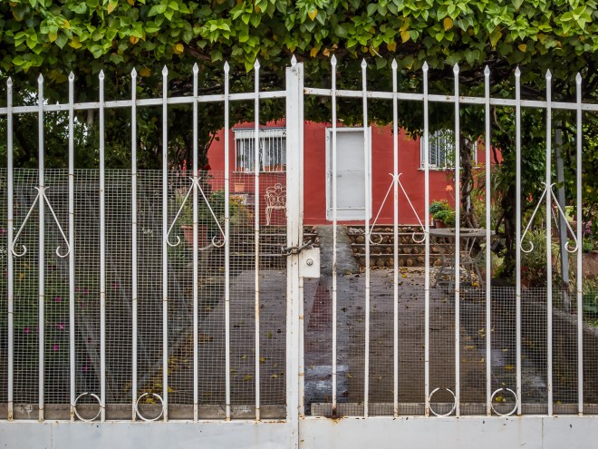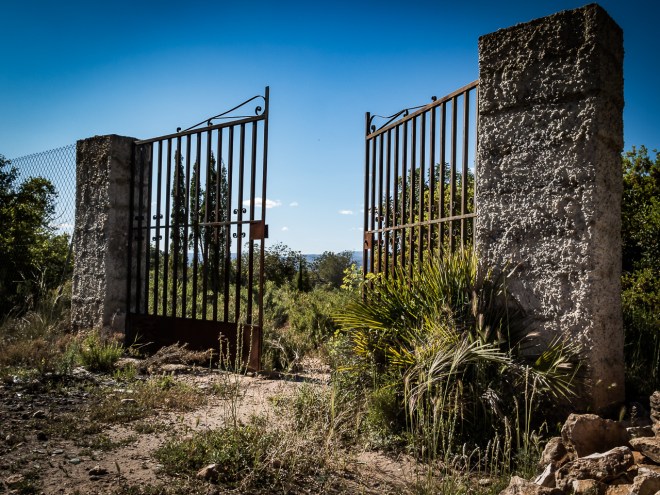 The area of scrubland was a lot bigger than I expected, I was not sure if it was private or not, so I took a tentative walk up a dirt path into it. I found out late that the area is open land and everyone walks through. Next time I will not be so circumspect. I walked up the path as far as these old stuck open gates, they led into the neighbouring orange grove, but I suspect no one has been through them for a while.