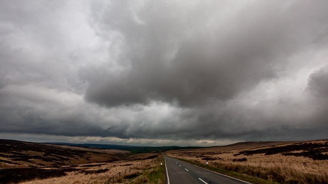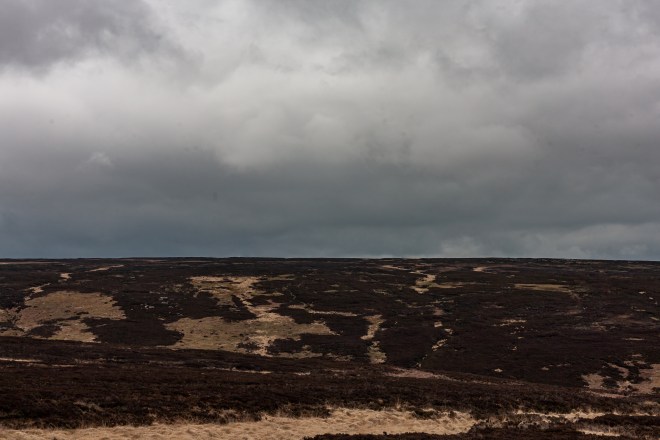 Leaving town the way I came in, it was a short drive before I turned off the main road and headed up to Cragg Vale. The road is narrow and gently winding and quite fast and there were not a lot of places to stop and take photos. The village is so small that a long blink would blank it out from your journey. I carried on up the valley towards the top, and the burnt black and dry brown of the moor. This is what I wanted to see; bleak and barren open moor land. I was blessed with almost perfect weather, dark low cloud. Lovely.