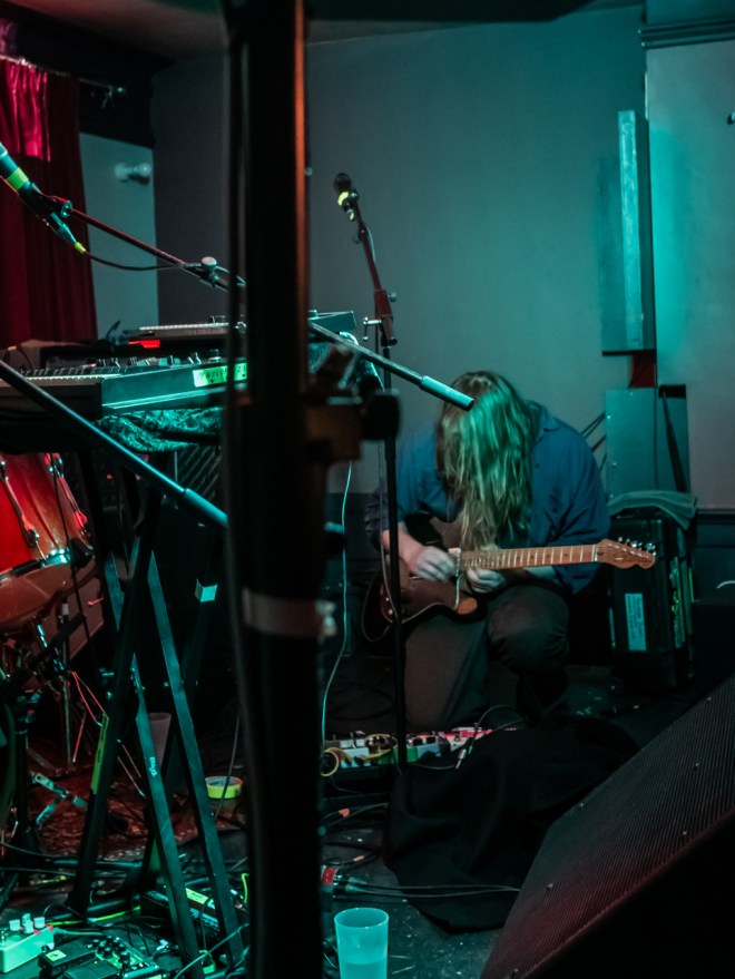 I went closer to the front for a couple of songs of the second band, Winter Garden. They weren’t really my cup of tea, nothing wrong with them, they had a very good guitarist, but the songs didn’t really set me on fire. I did like some of the guitar and looped synth noodling between songs, there was a great gothy noodle of the intro to Neil Young’s ‘Hey hey my my’ that would have been a good cover, though it was just an in between song thing sadly.