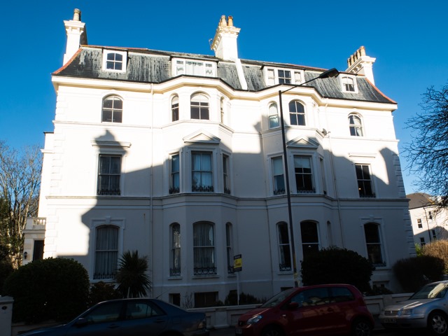 We walked up through a park and a surprisingly steep cliff side path to Folkestone West where there were a couple of flats I was interested in doing a walk past, just to see if the outside looked like the photo. The first was in the Metropole – and I was quite excited to see it. It actually looked better than the photo, the flat does not have direct sea views, but it can be seen from a window ! It is surprisingly cheap which does worry me a little…