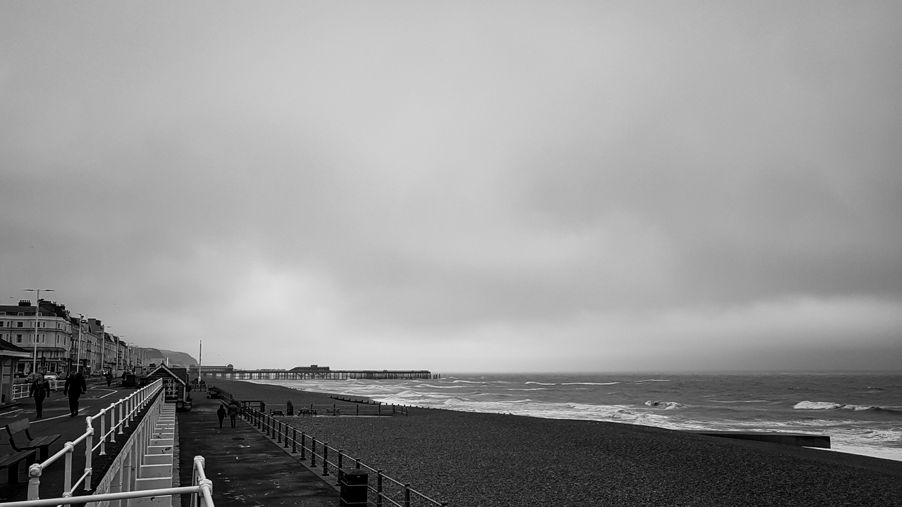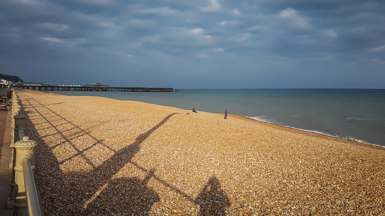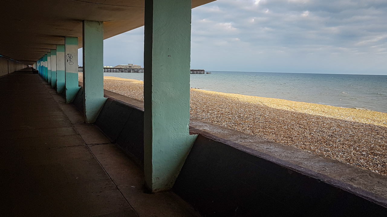 My pre-work ritual, when I’m working from here, is simple and perfect; walk down Pevensey Road, grab coffee from one of the Kings Road cafes, stroll to the seafront, find a bench, watch the water. Then the return climb up through St Leonards Gardens and its scruffy Victorian elegance. It certainly gets the blood moving before the work day begins.