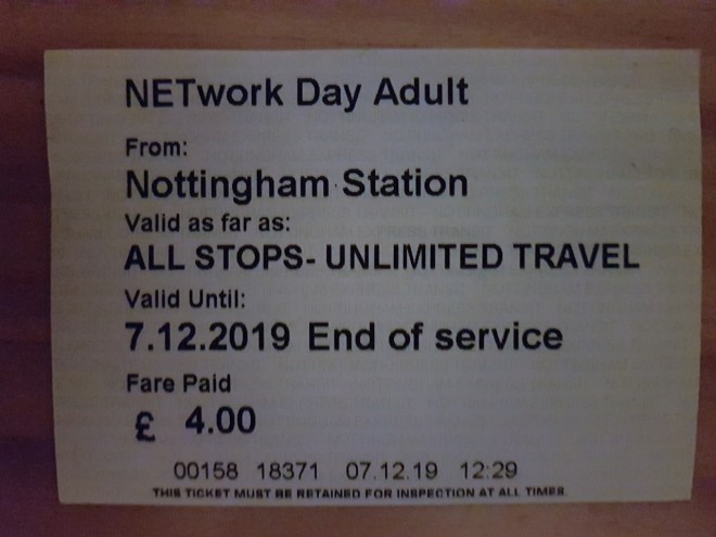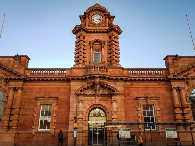 The train journey from St Pancras to Nottingham is pretty quick, much quicker than I expected at 90 minutes. Headphones on and book reading, we don’t really do long chats on the train, and I need to block out the inane natter of the people around me. This is my first East Midlands Railway experience and I enjoyed it, the train was comfortable and clean and the loos worked, we were on time; what’s not to like.
